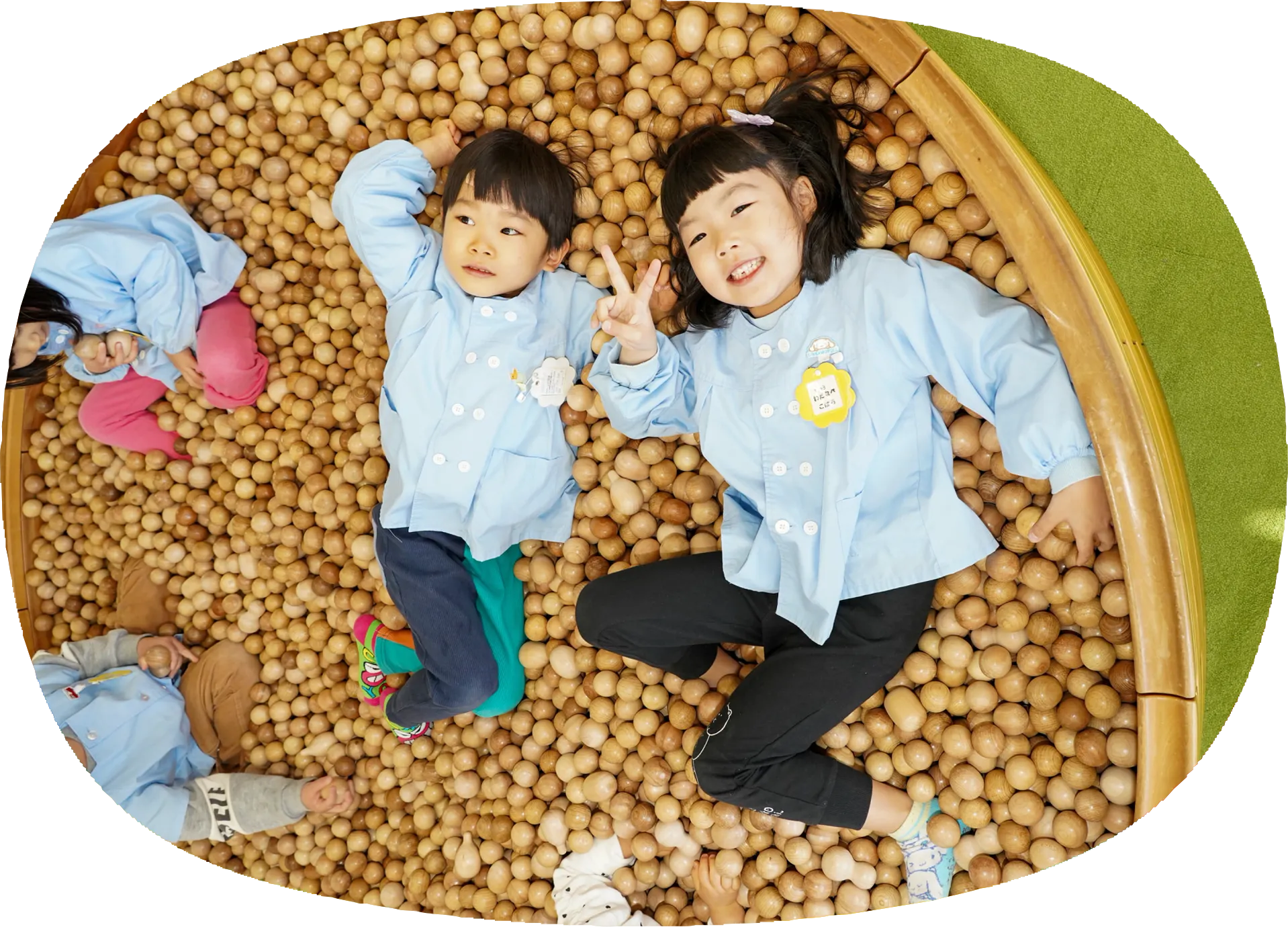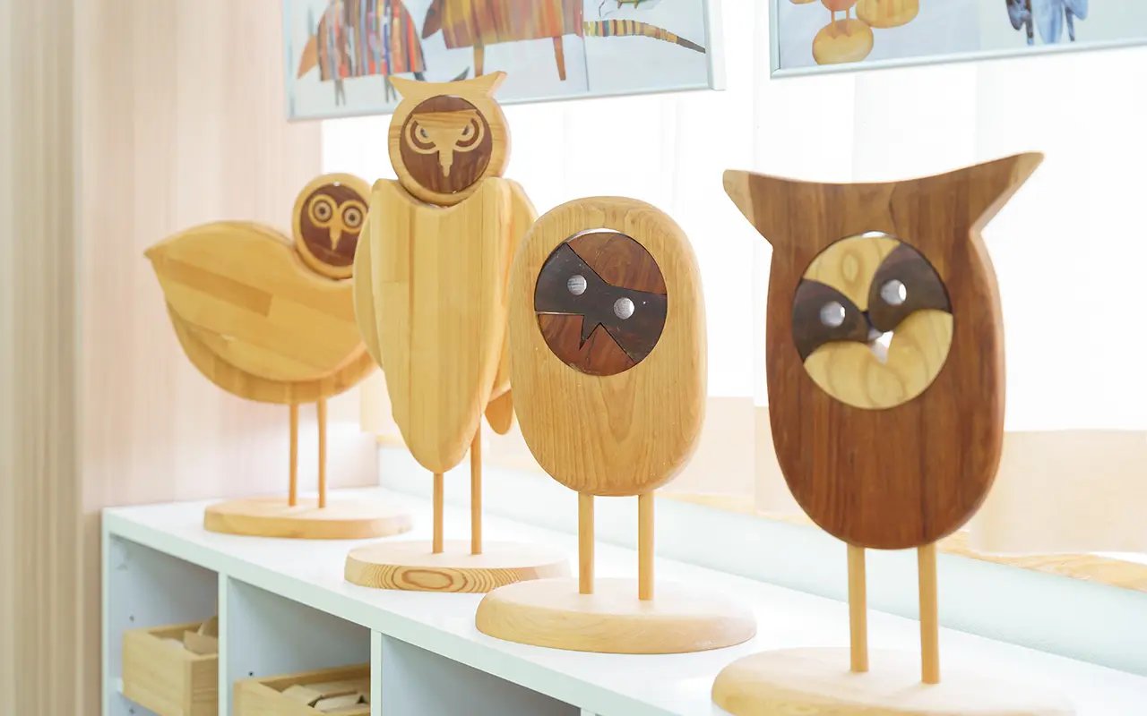 一方、長年にわたり大学と連携した研究プロジェクトにも取り組み、非認知能力(がんばる心、おもいやりの心)を育んでいます。更に世界で唯一の『木の創具館』では子ども達の創造性を育て、自分で考えて選択する力を養っています。