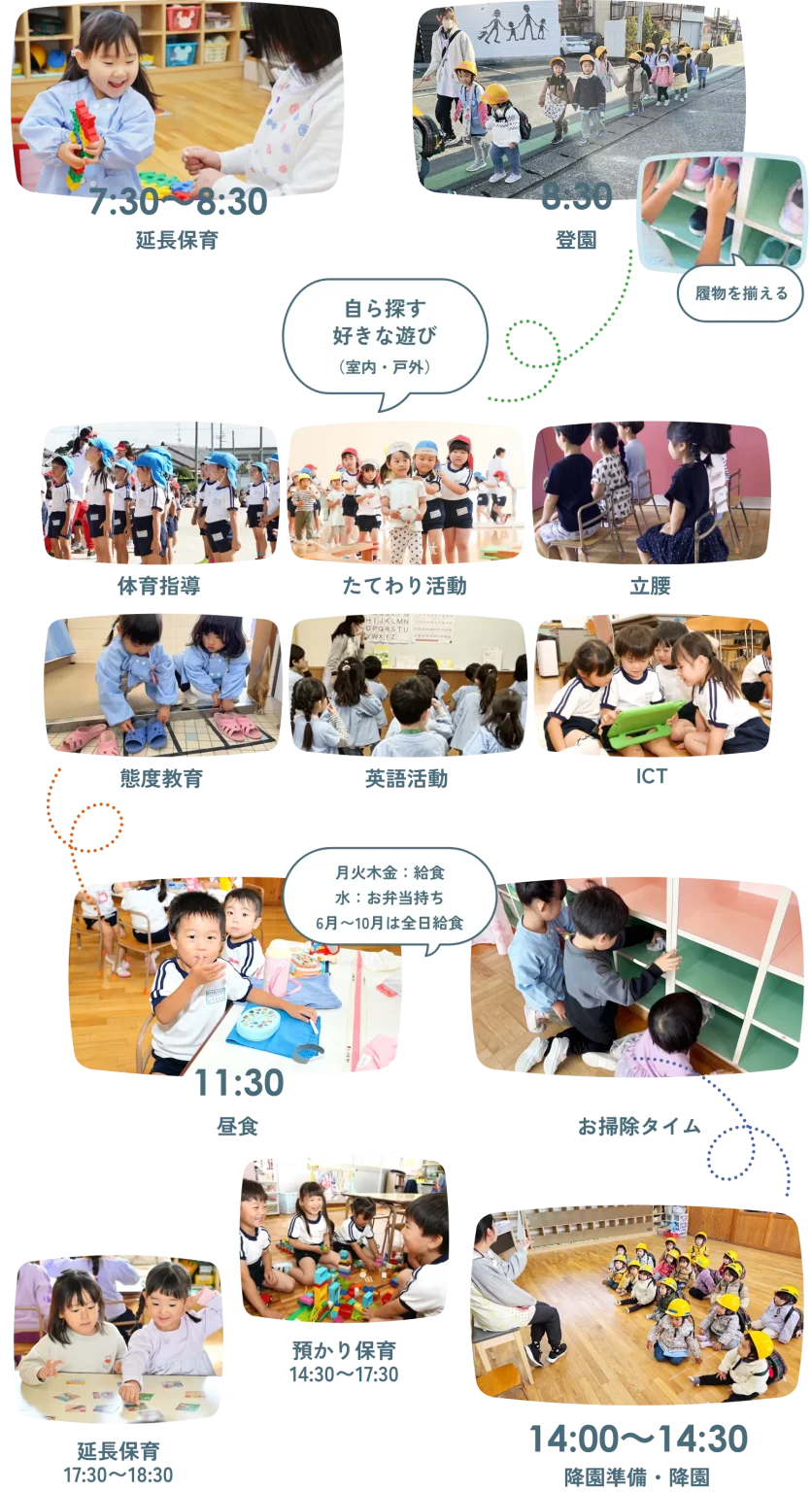 「挨拶・返事・履物を揃える・姿勢を正す・食事のマナーを身につける」など、基本的な生活習慣と態度を丁寧に指導し、心豊かで自律した人間の育成を目指します。
